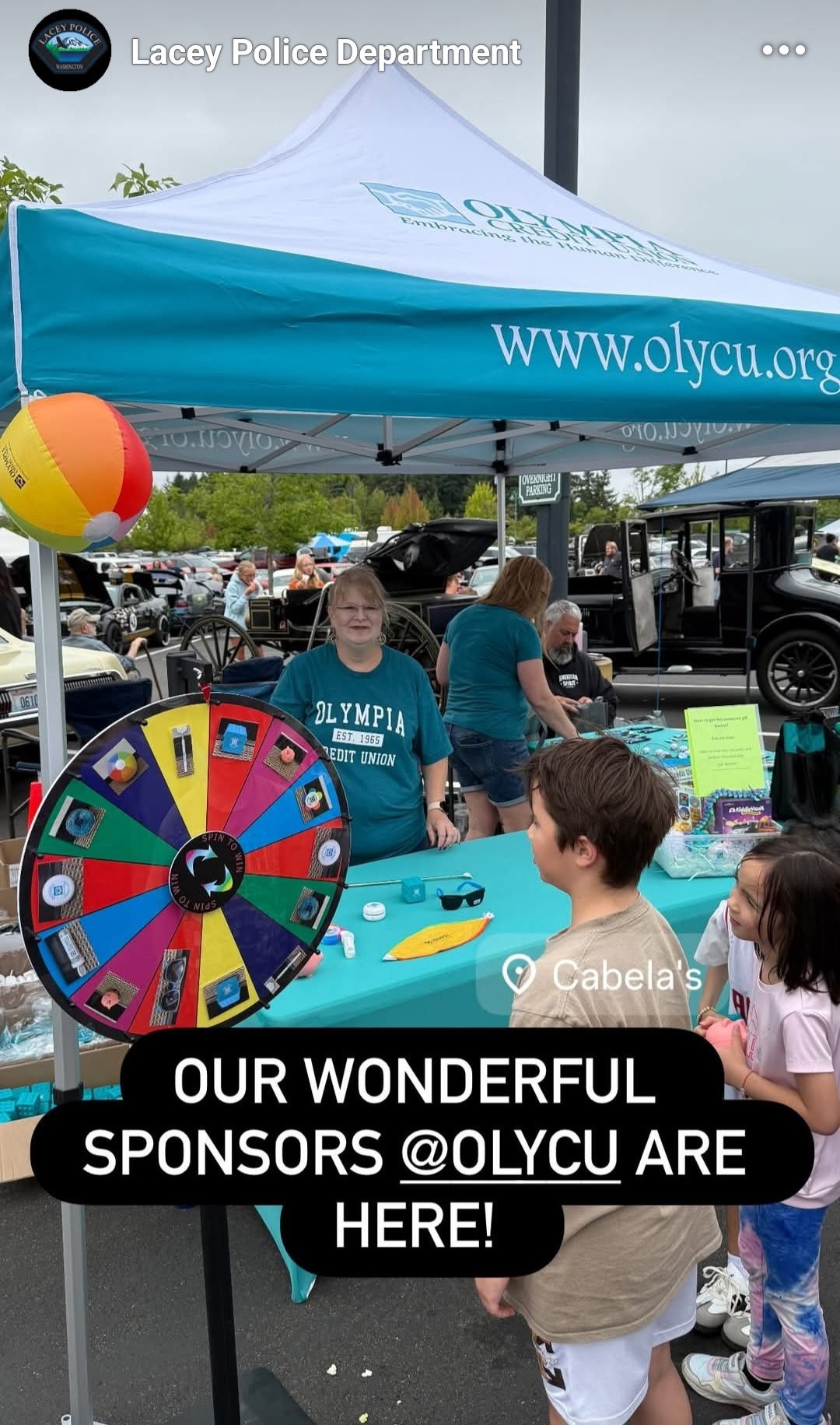 Olympia Credit Union at Lacey Cops Cars and Kids event! We love our kids and our community! And the cars were pretty cool too…